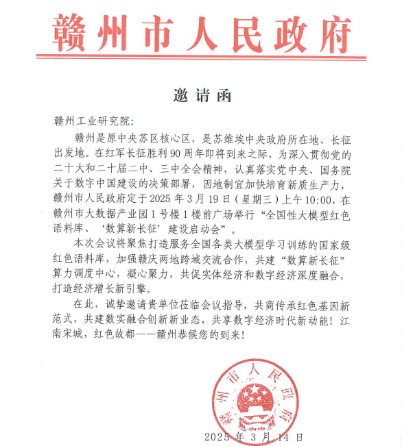 3月19日,“全国性大模型红色语料库、数算新长征”建设在赣州大数据产业园正式启动。这是深入贯彻全国两会精神的具体行动,也是赣州、庆阳两地携手合作的阶段性硕果。